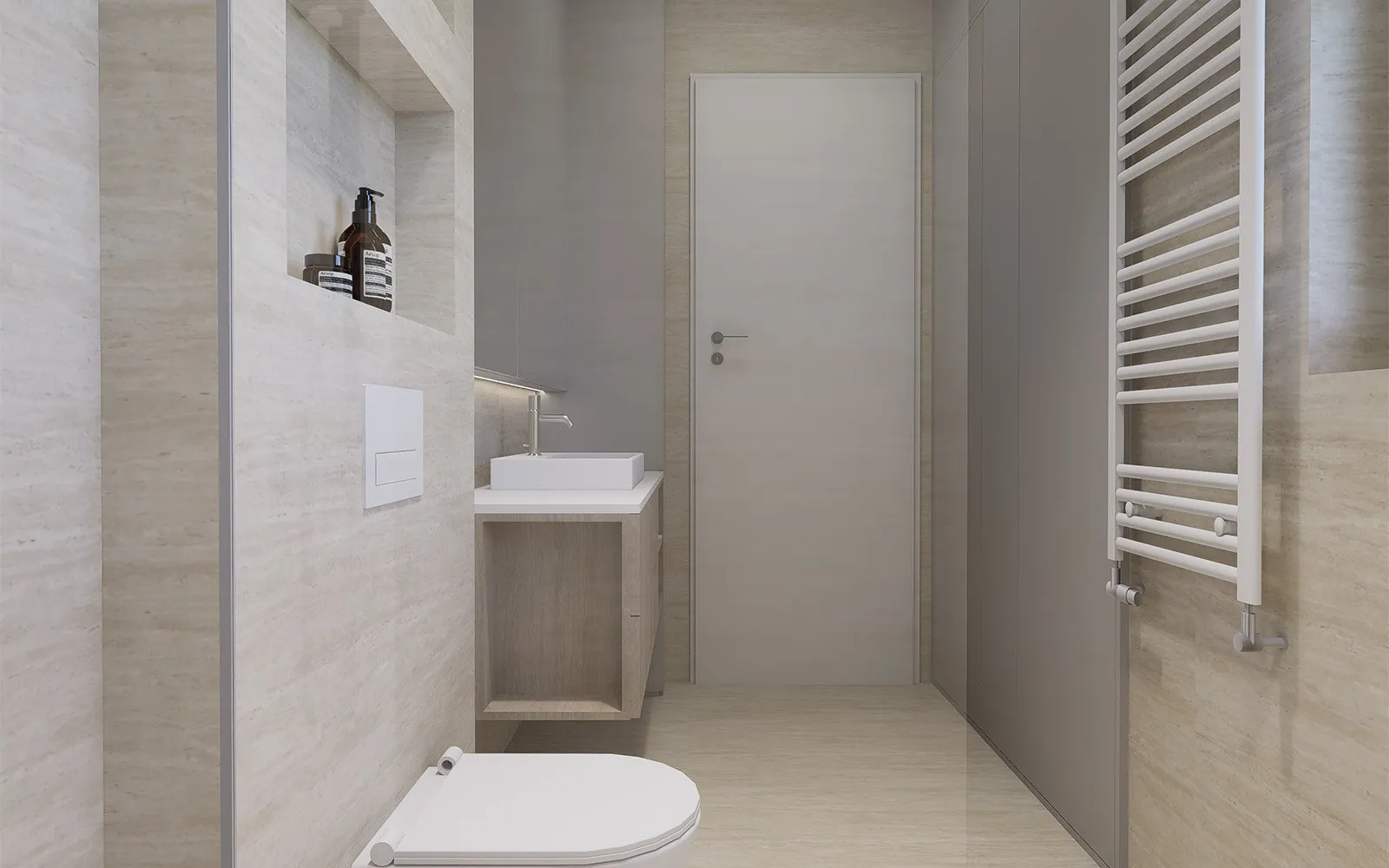 Obje kupaonice odišu bezvremenskom elegancijom travertin kamena.