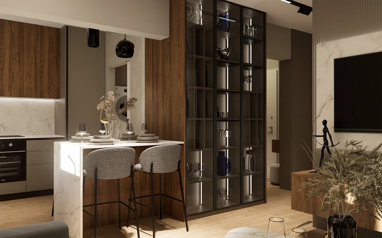• Vrhunski materijali – Mramor, staklo, metal i drveni elementi osiguravaju dugovječnost i prefinjenost.