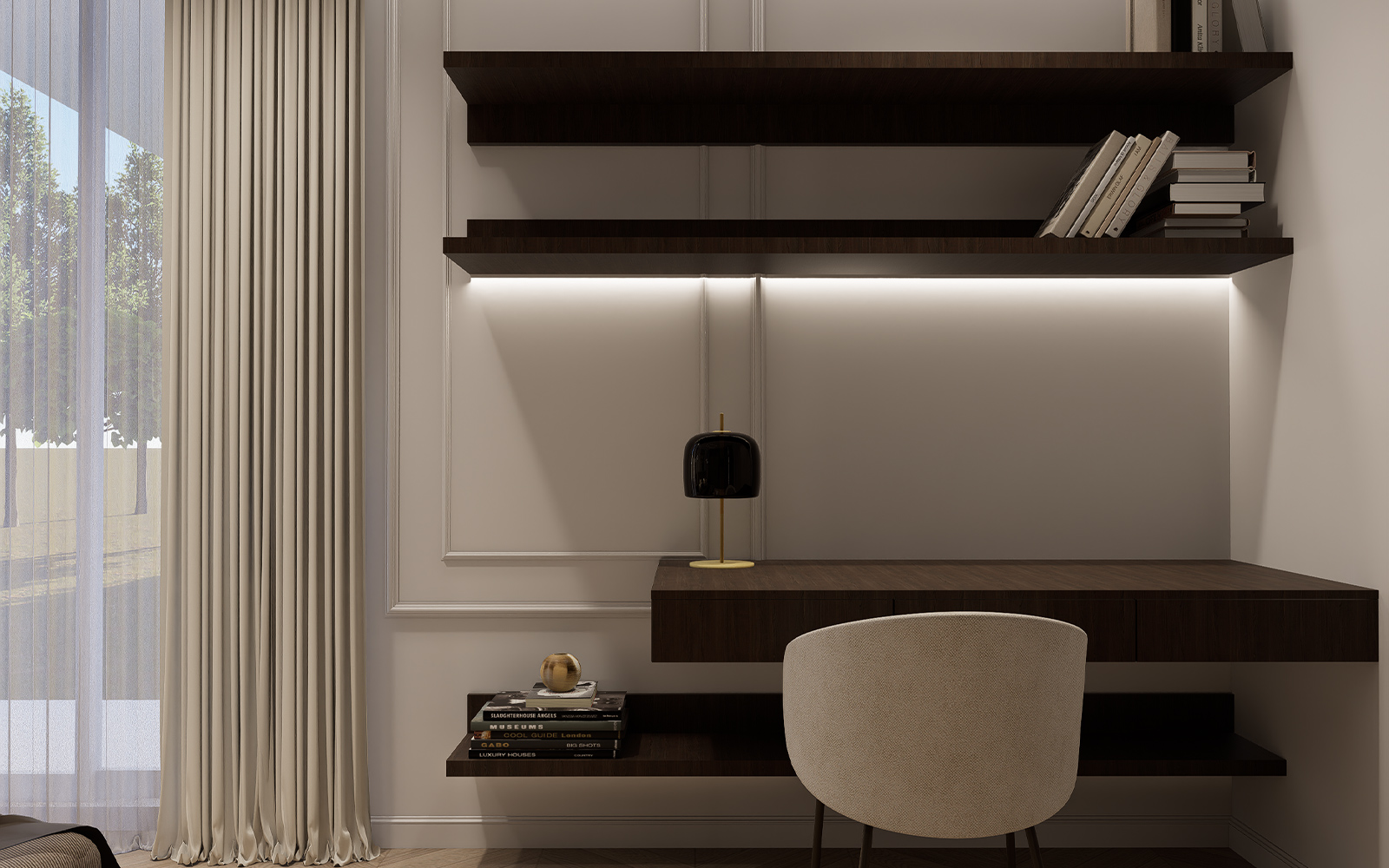 Ako čitate prije spavanja, dizajn uključuje rasvjetu s toplim tonom svjetla i utičnice uz krevet. Ako prostor koristite i za presvlačenje, potrebno je dodatno planirati ogledala, rasvjetu i raspored ormara.