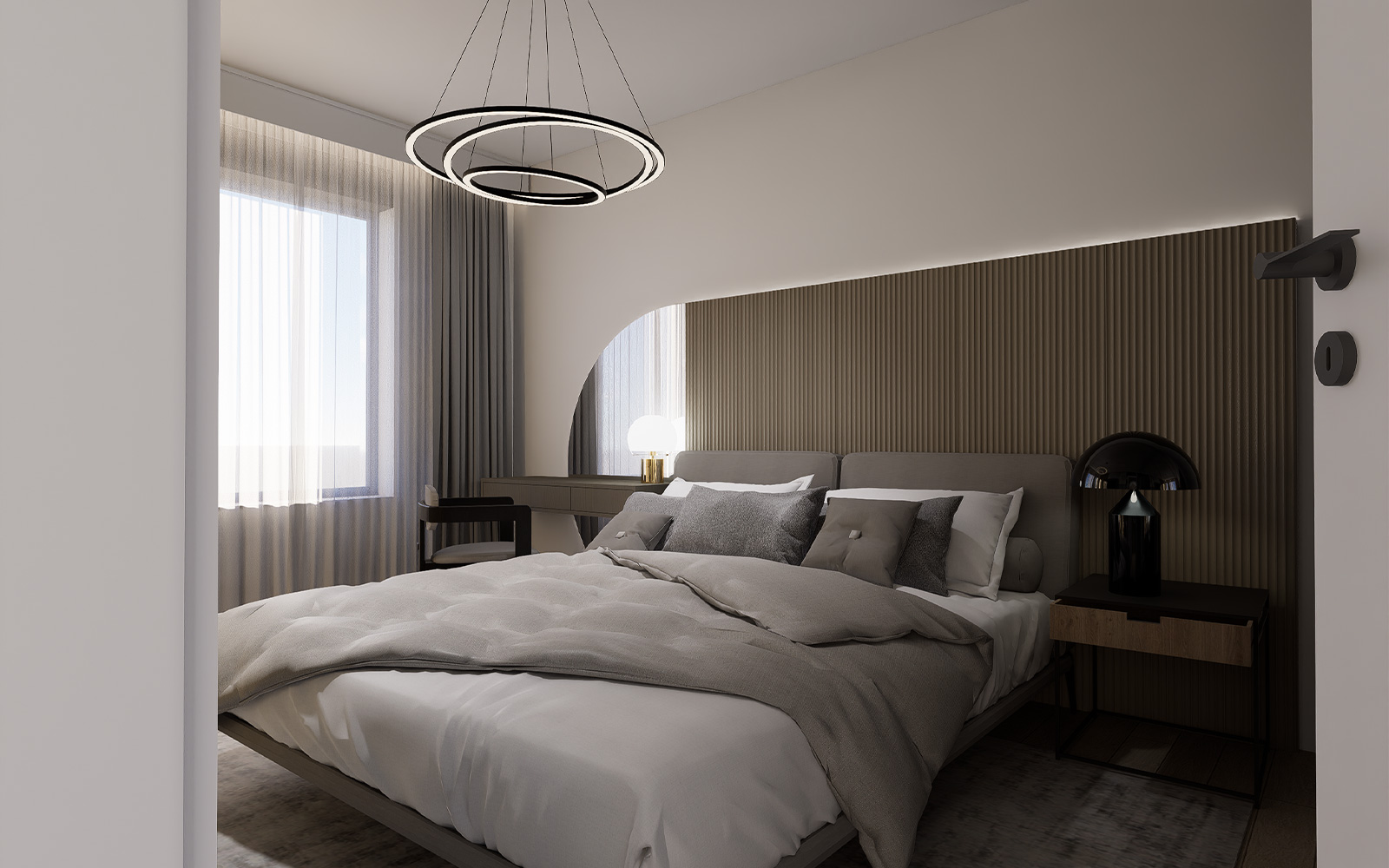 Mirna spavaća soba ne nastaje slučajno – rezultat je promišene ravnoteže boja, svjetla i funkcionalnosti.