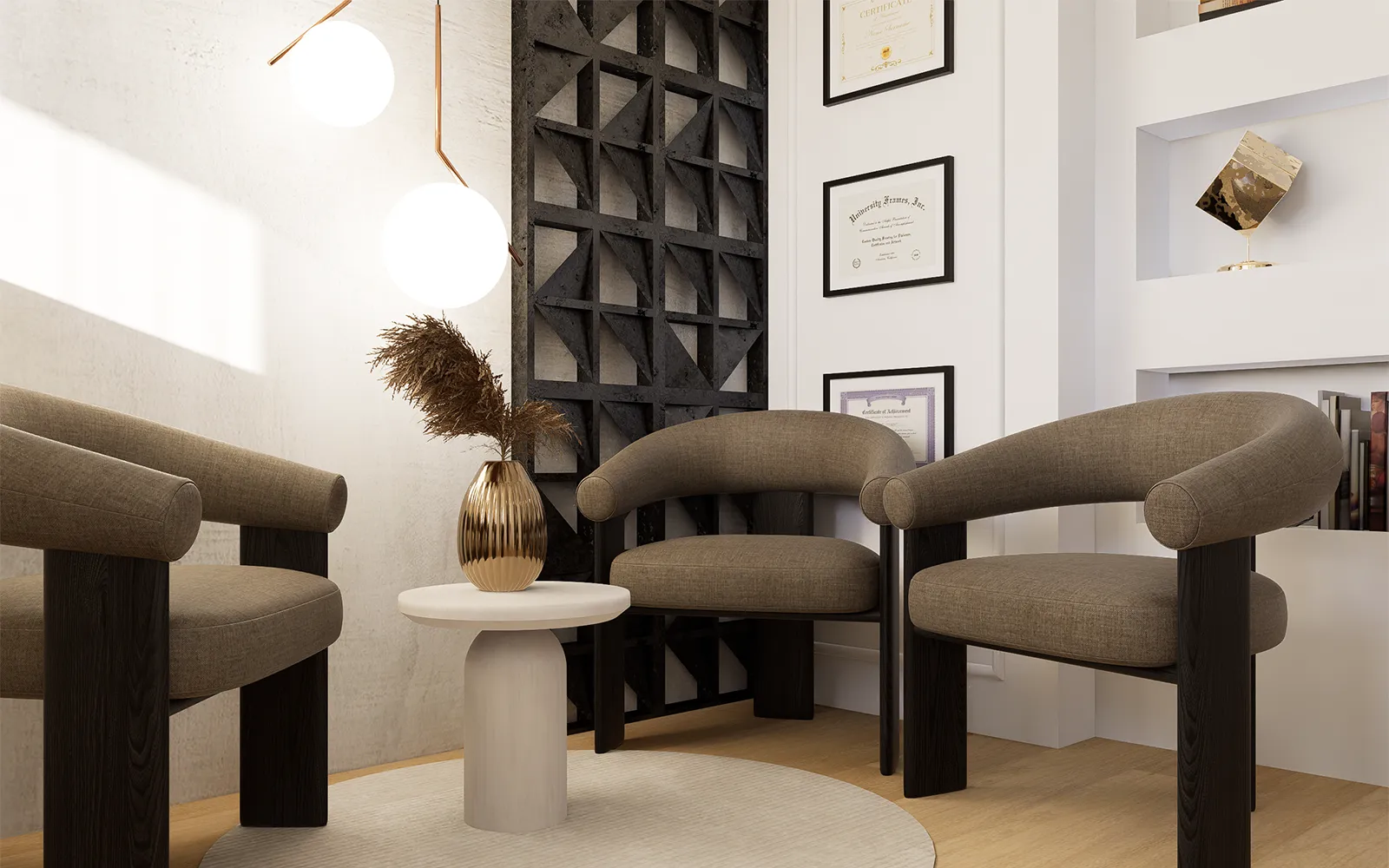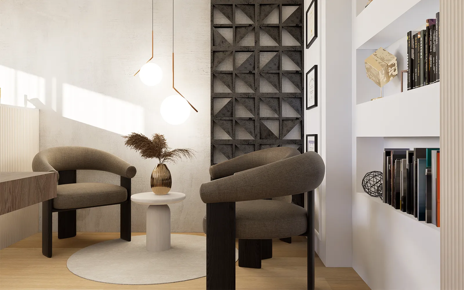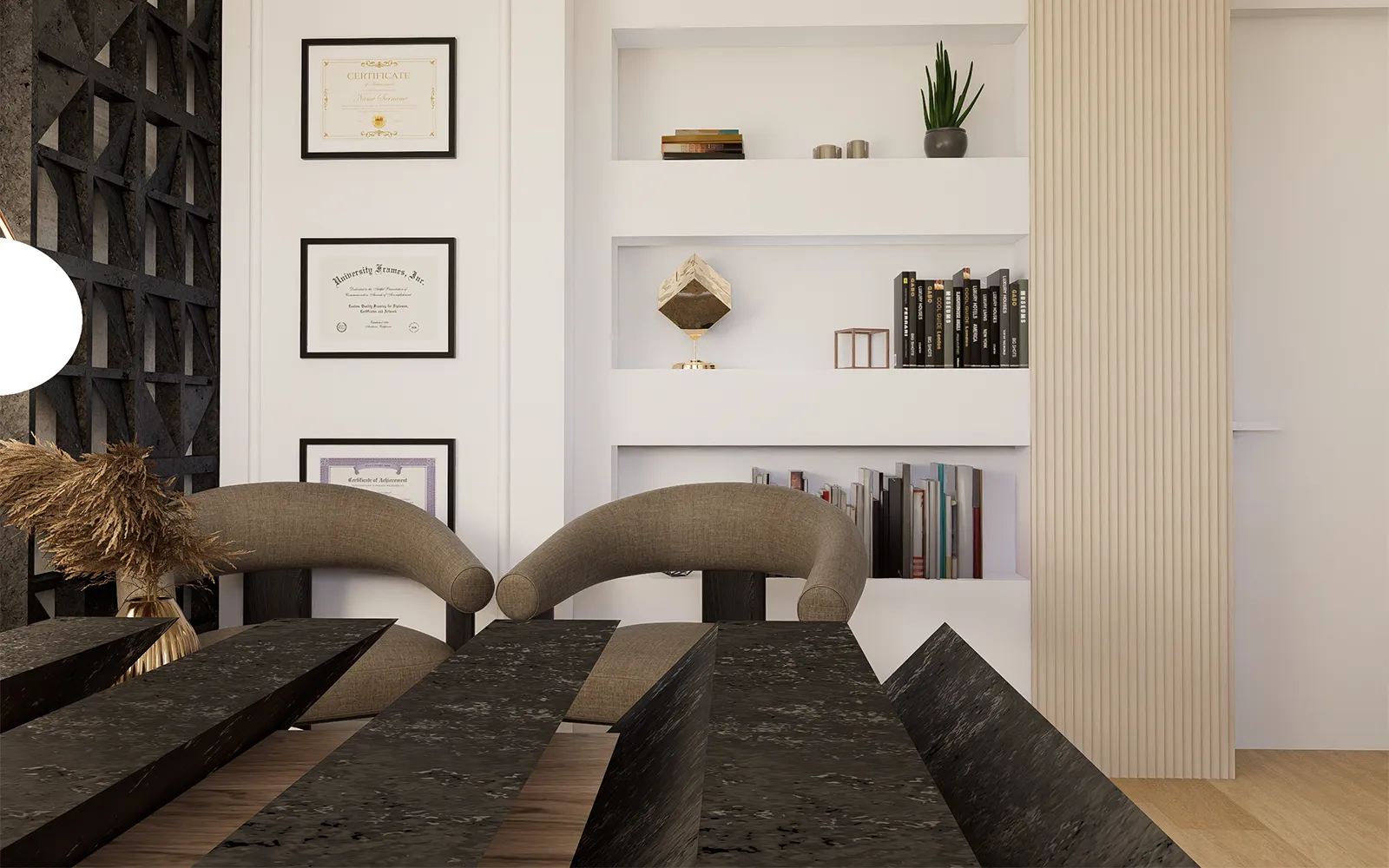 Posebnu pažnju posvetili smo dekorativnim zidnim panelima i luksuznoj stropnoj i podnoj rasvjeti koja prostorima daje dinamičnost i toplinu. M1st Design studio stvorio je dizajn koji istovremeno naglašava suvremene trendove i funkcionalnost. Ovi dekorativni elementi čine svaki prostor unikatnim i savršeno prilagođenim potrebama poslovanja, bilo da se radi o odvjetničkom uredu u Velikoj Gorici ili nekom drugom dizajnu ureda.